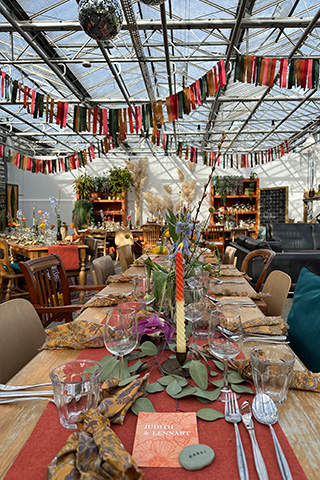 Kas van Kaat is een bijzondere plek waar natuur, licht en liefde samenkomen. De kas vormt een romantisch decor voor jullie ceremonie, diner of feest. De groene omgeving, het natuurlijke licht en de ontspannen sfeer zorgen voor een intieme en persoonlijke beleving. Van ontvangst tot afsluiting: alles ademt rust en aandacht.